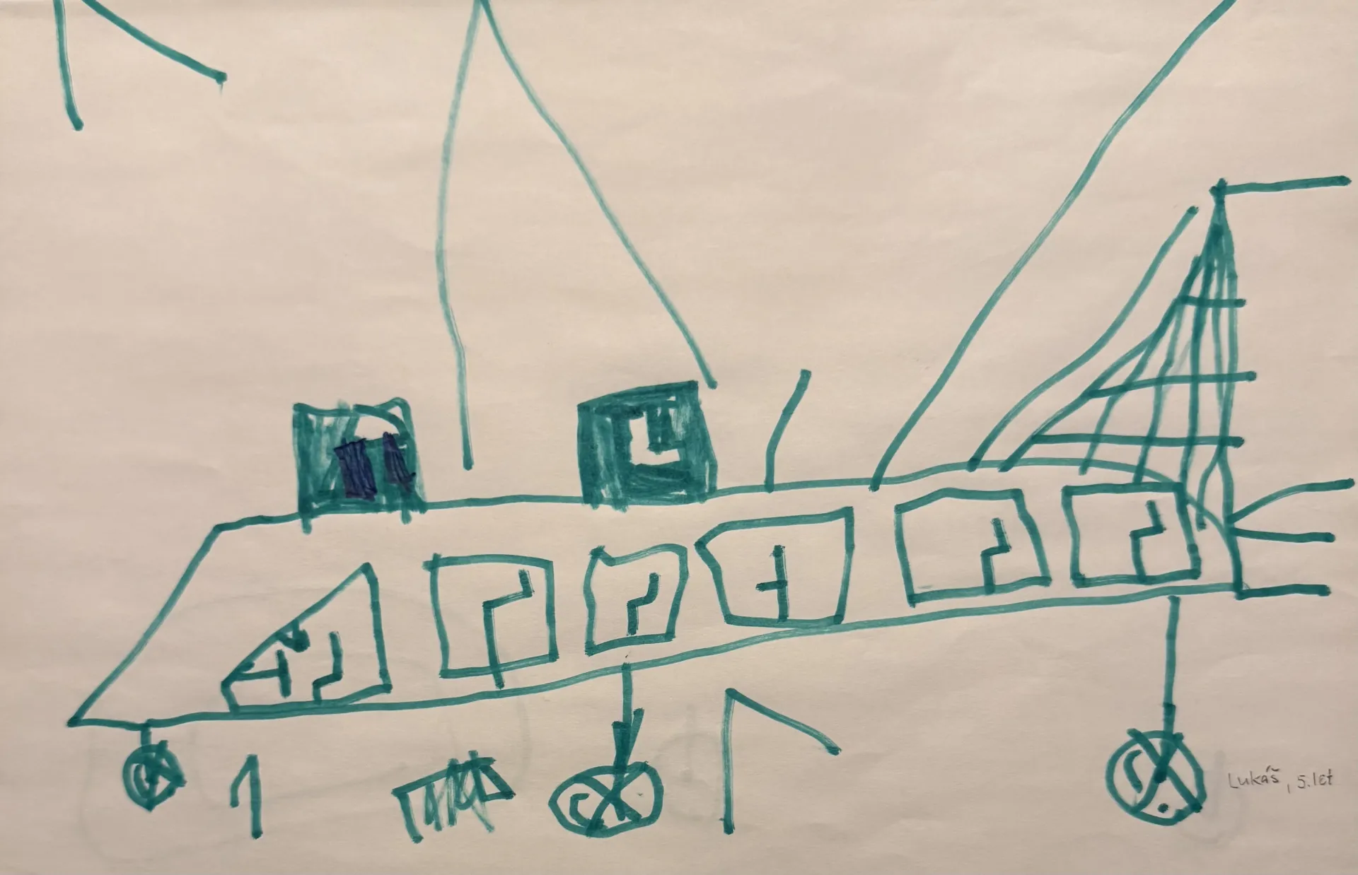 Tento raketoplán namaloval Luky, když mu bylo 5. let. Teď s tímto raketoplánem řádí "tam nahoře" ...